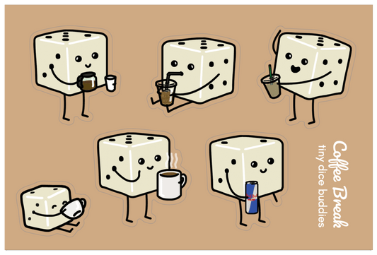Coffee Break Tiny Dice Buddies Die-Cut Sticker Sheet (Set of 6 Stickers)