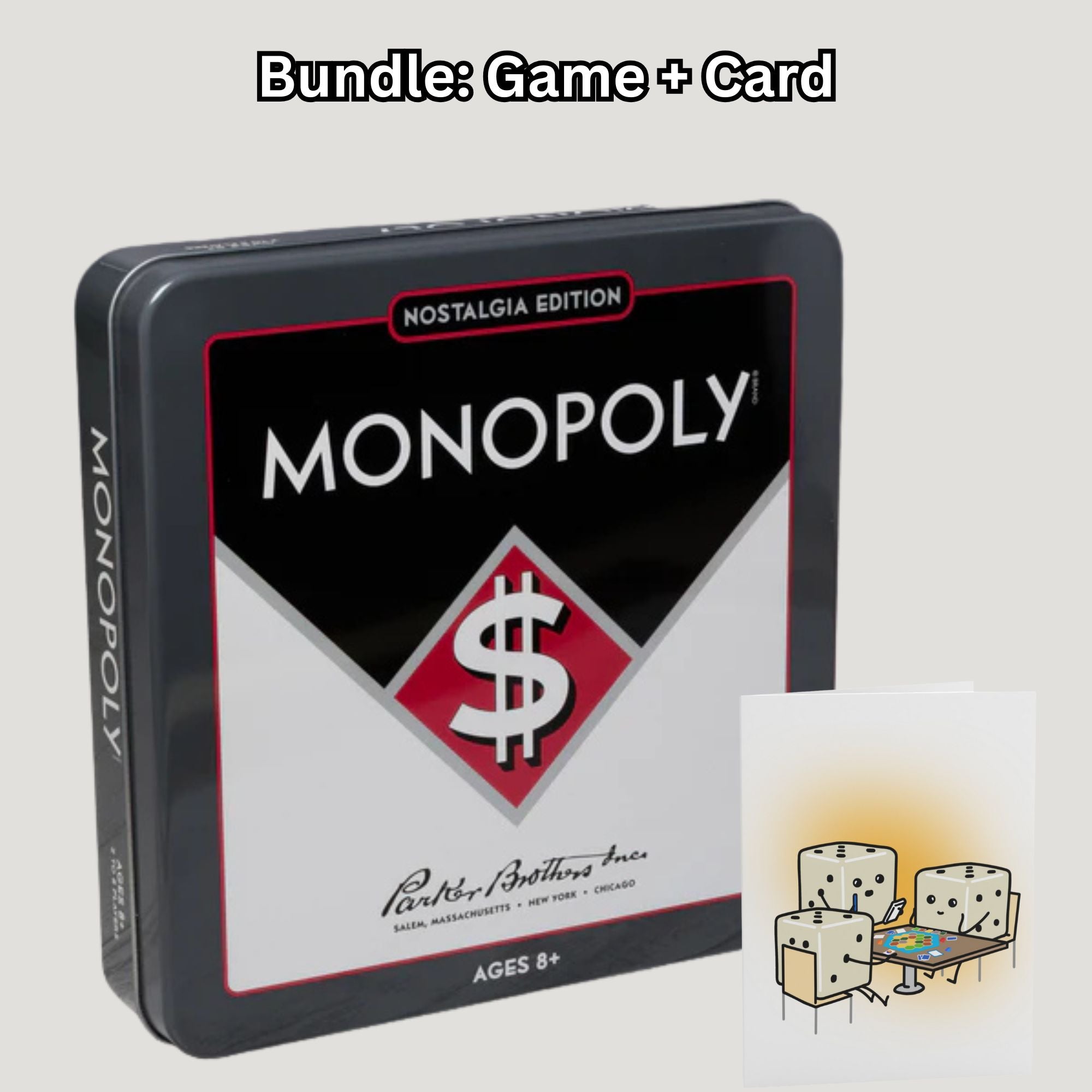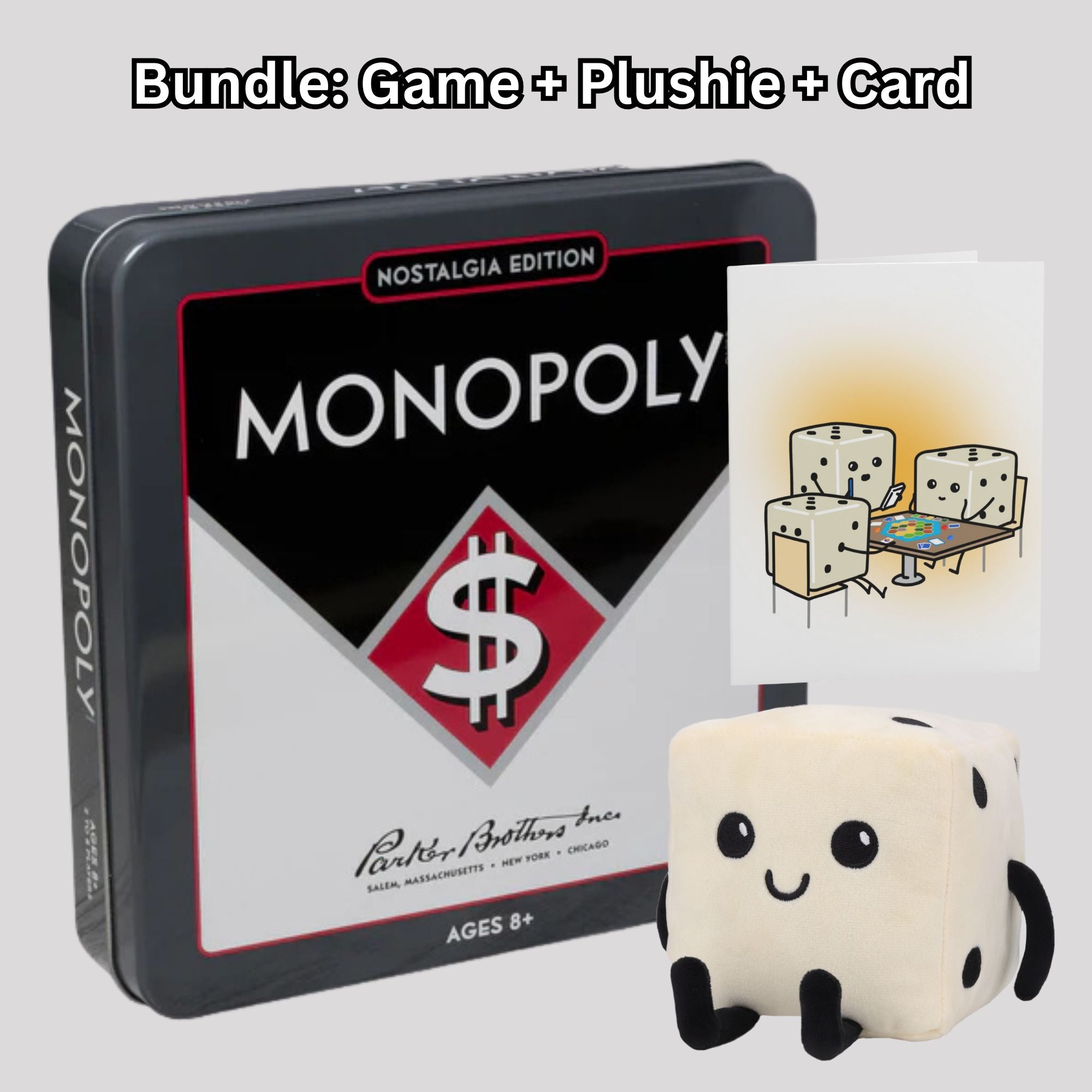 Select from the dropdown to purchase the board game with a Tiny Dice Buddies Plushie, greeting card, or both for an automatic discounted price on the entire bundle!
