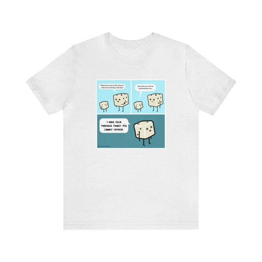 Tiny Dice Buddies "What Do We Say to the Universe" | Unisex Jersey Short Sleeve Tee