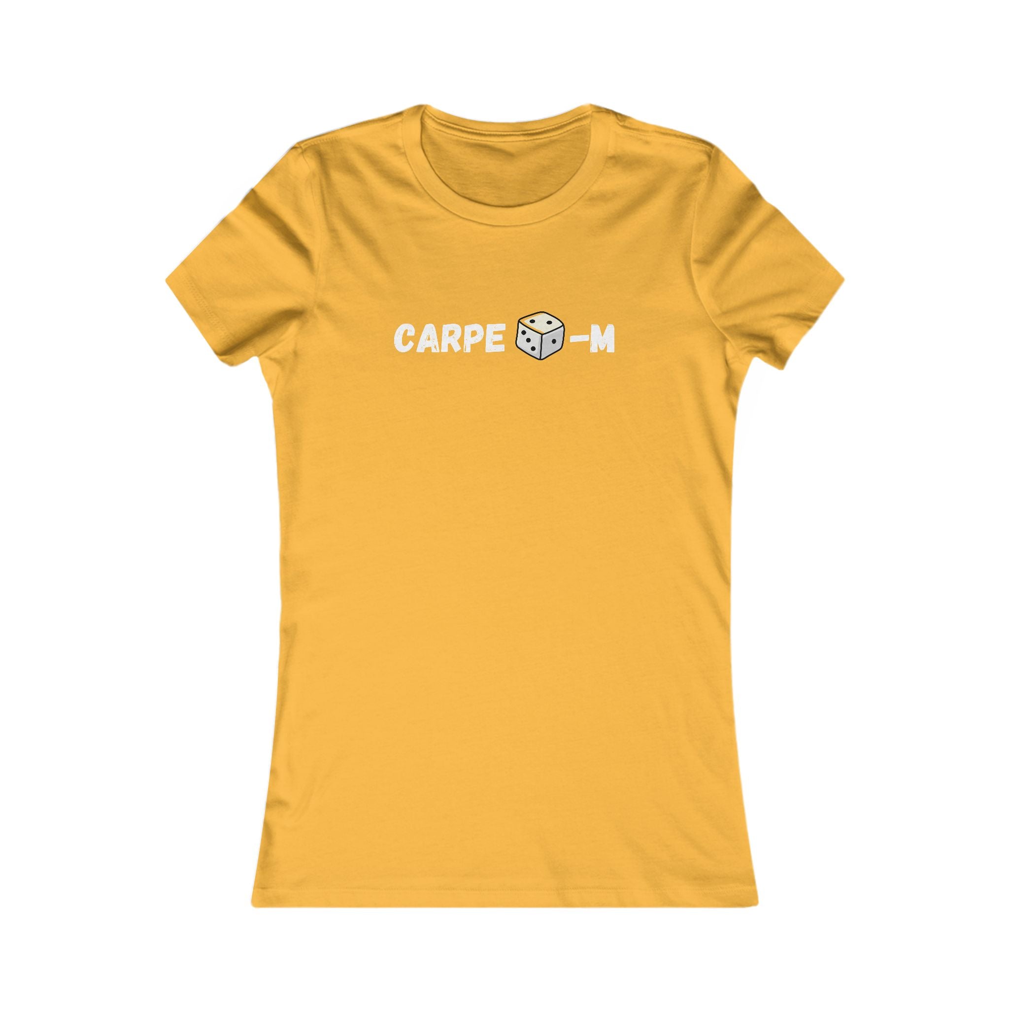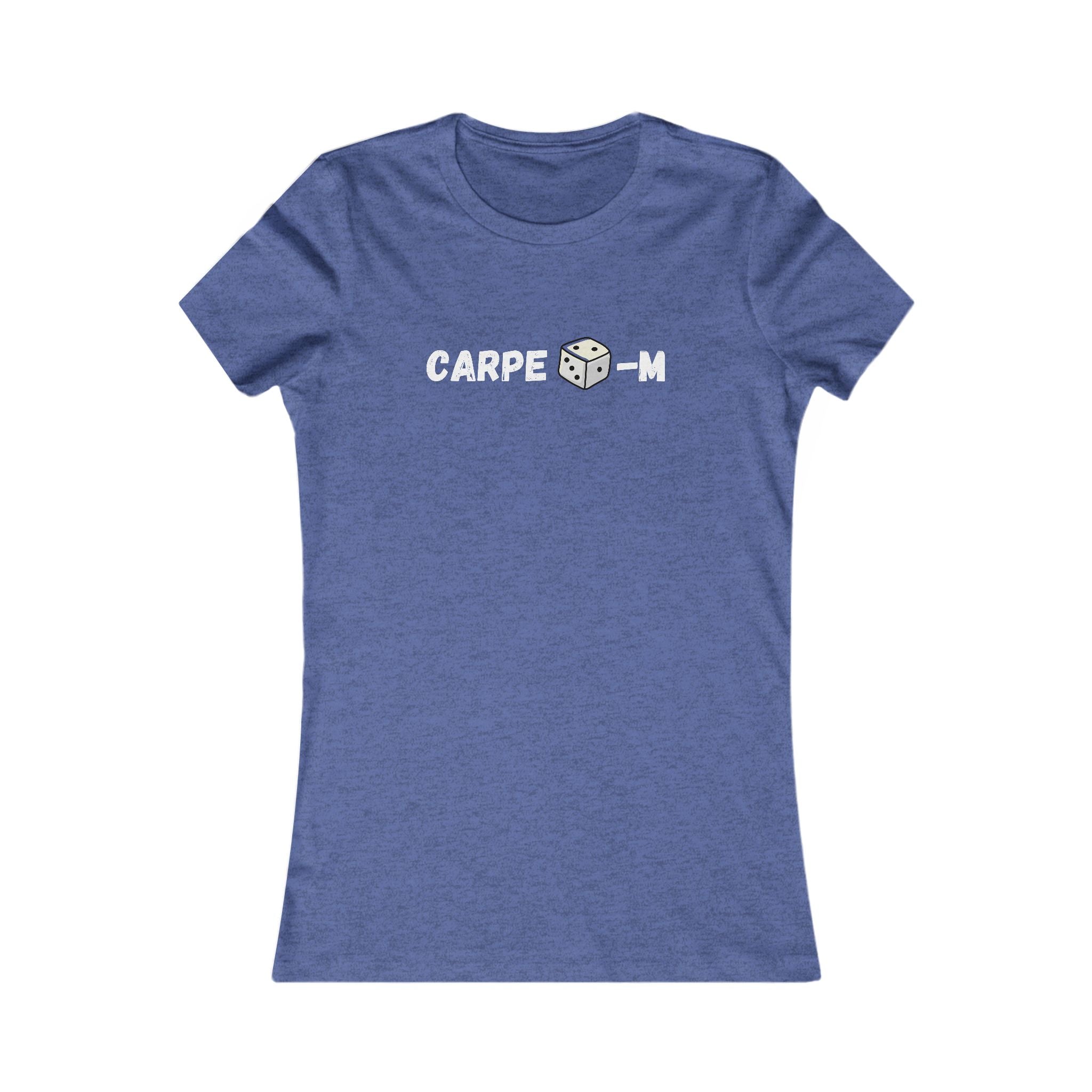 Seize the day in this well-loved favorite Carpe Die'm t-shirt. These tees come with a feminine fit that is as stylish as it is comfy. The ribbed knitting makes the collar highly elastic while the twill tape on the shoulder seams stabilizes the back of the shirt and prevents stretching.